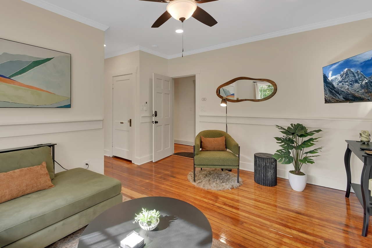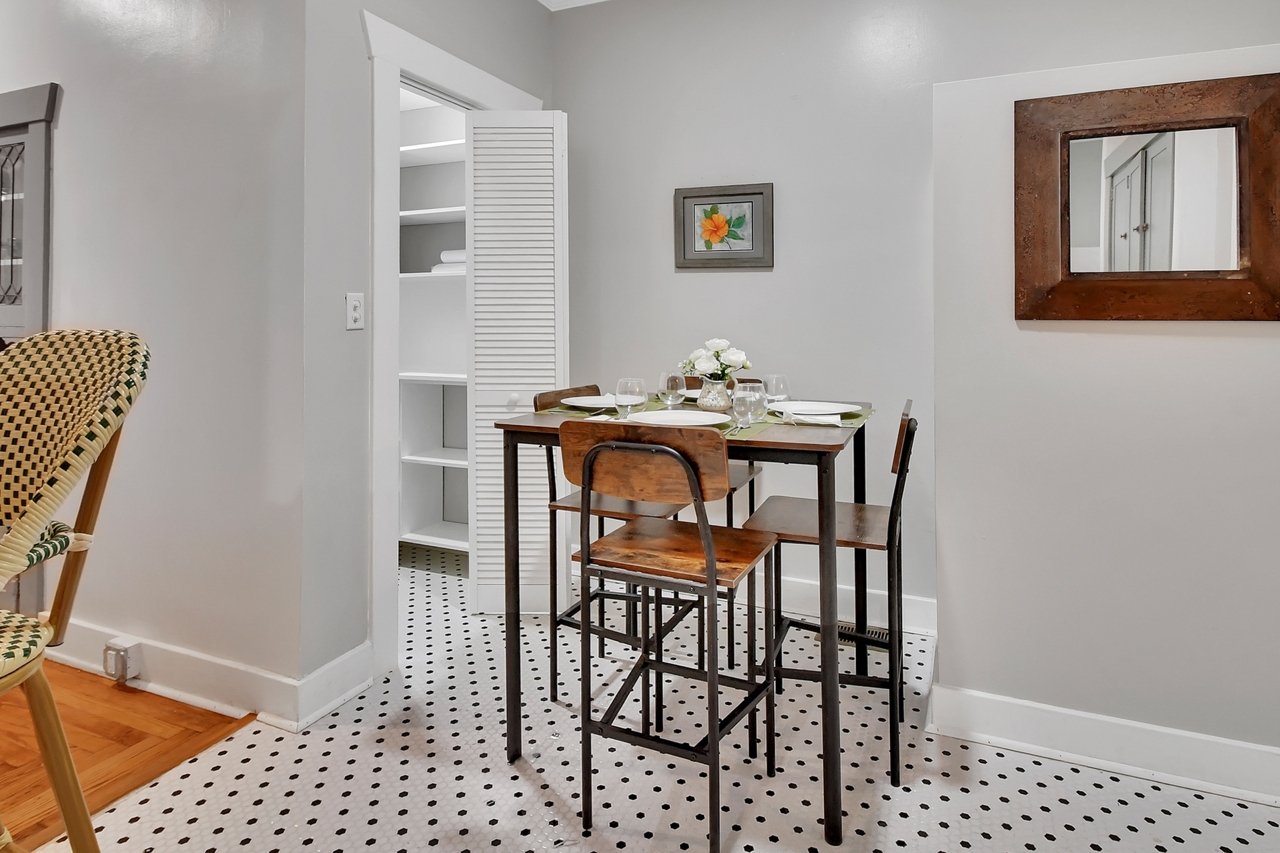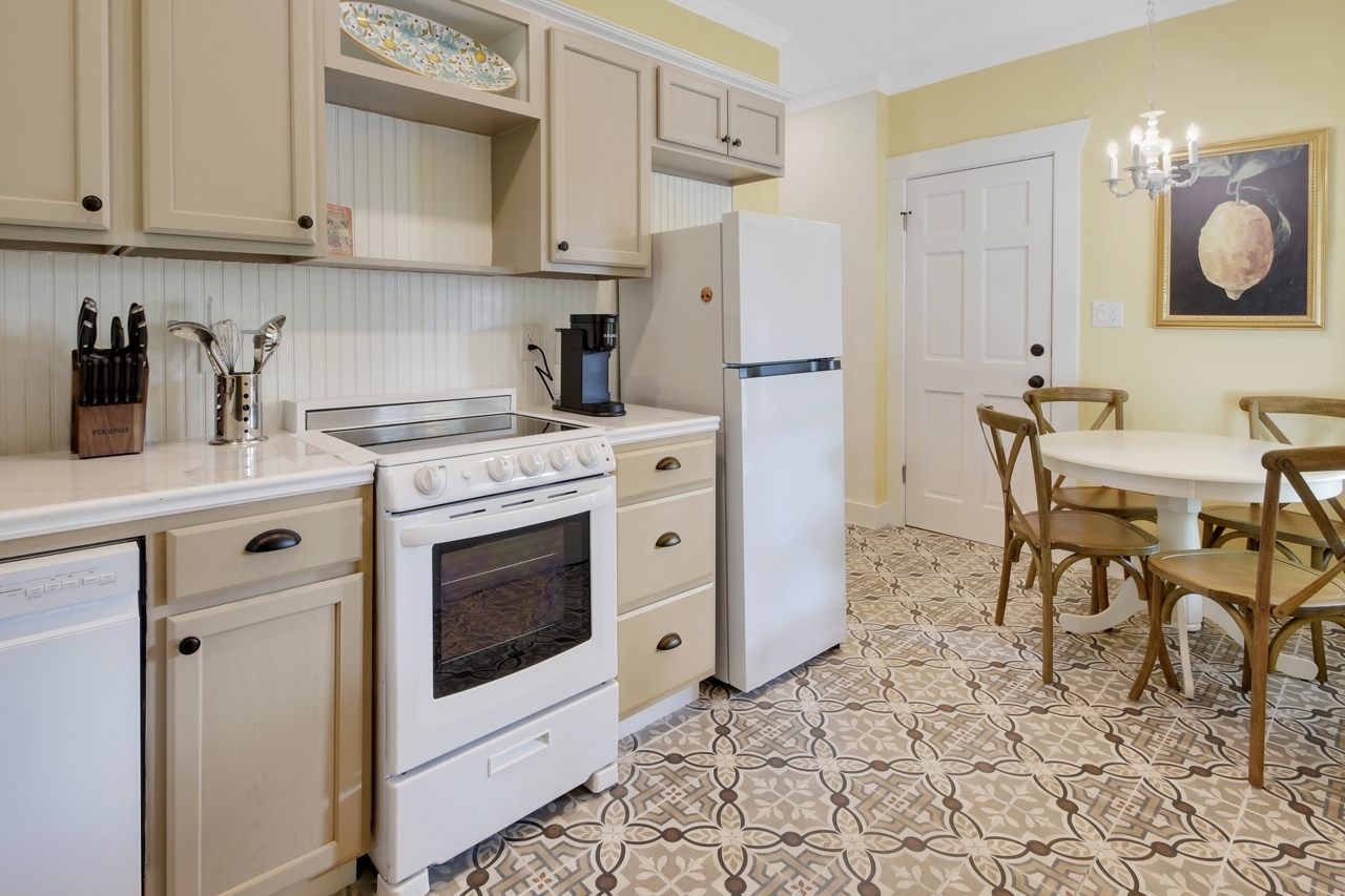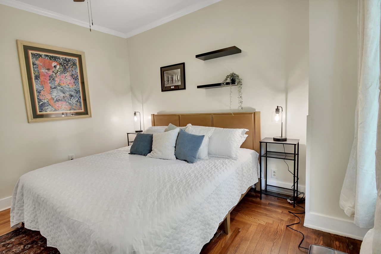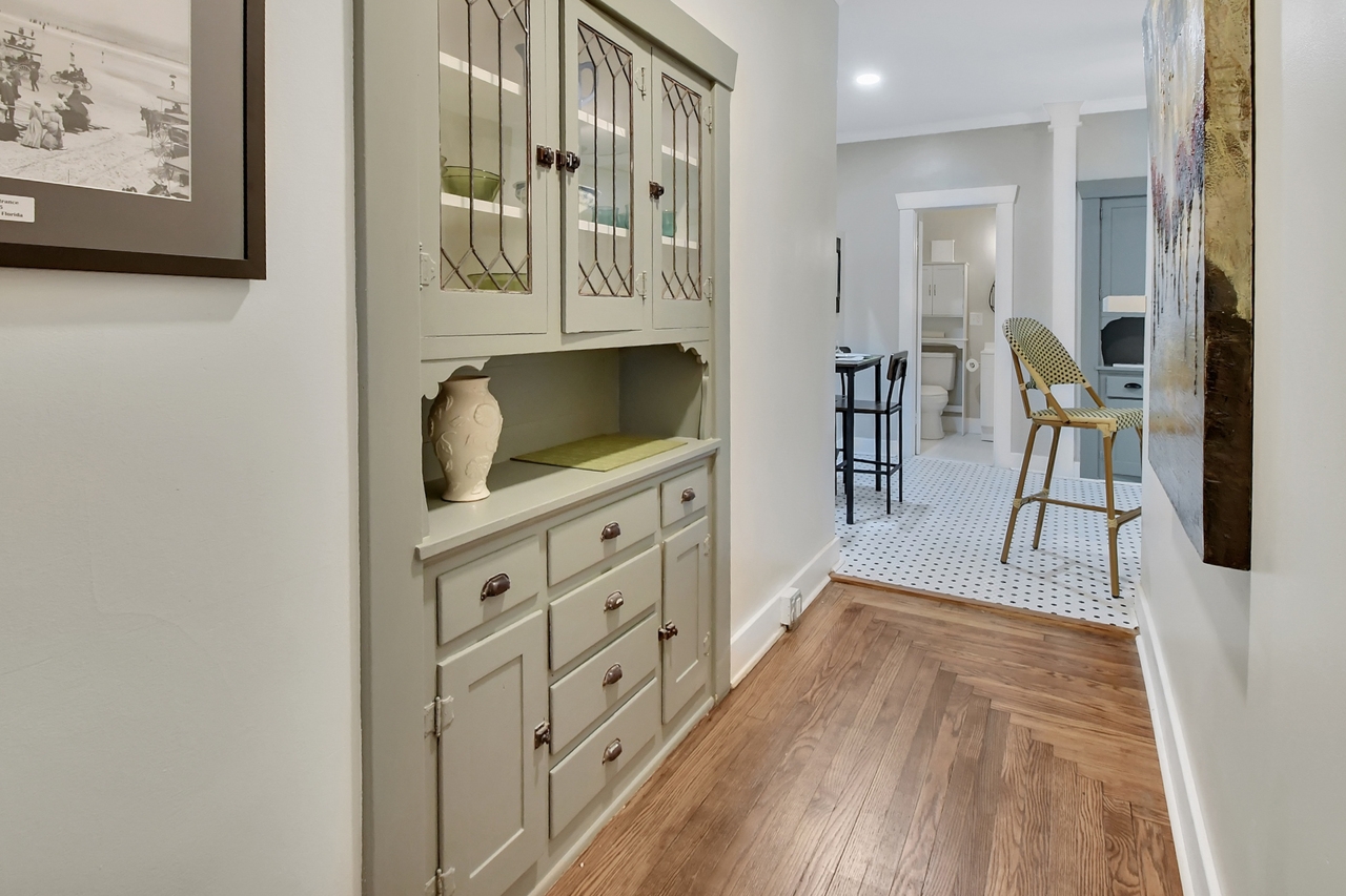 The Michigan House offers five distinct homes — two historic residences downstairs, two boutique flats upstairs, and a studio loft on the third floor — each thoughtfully designed with its own personality. High ceilings, tall original windows, and refinished heart pine floors create a consistent thread of comfort and character throughout. Restored wooden cabinetry and historic pattern tile add authenticity, while each space tells its own story. Every residence also includes a full kitchen for modern living.