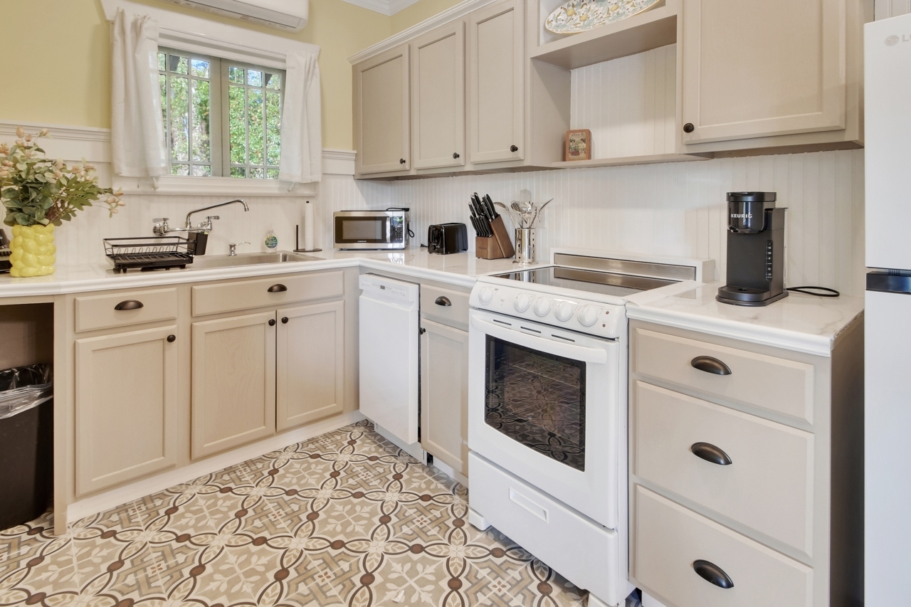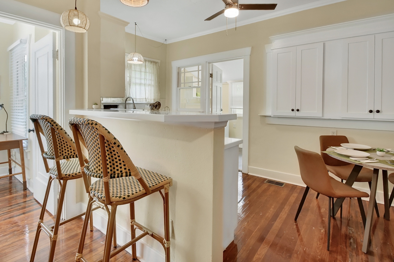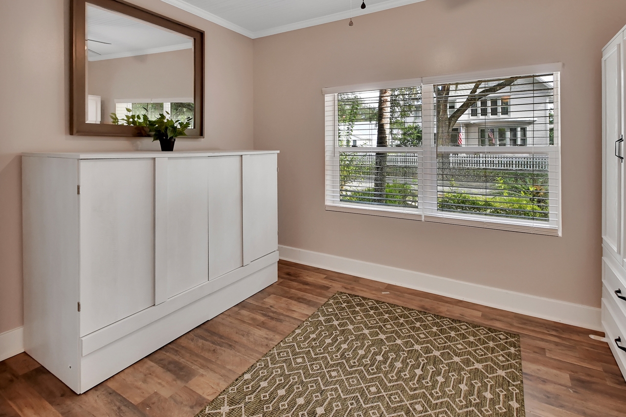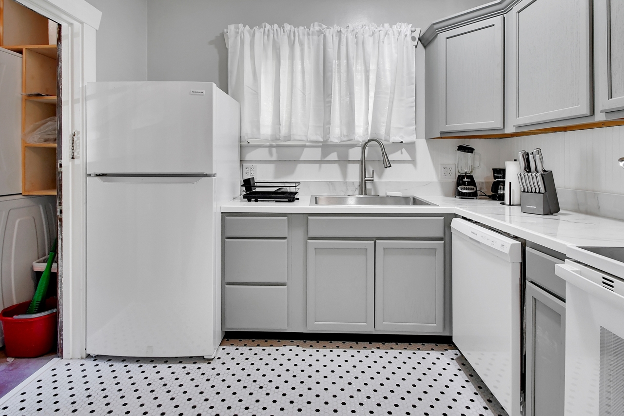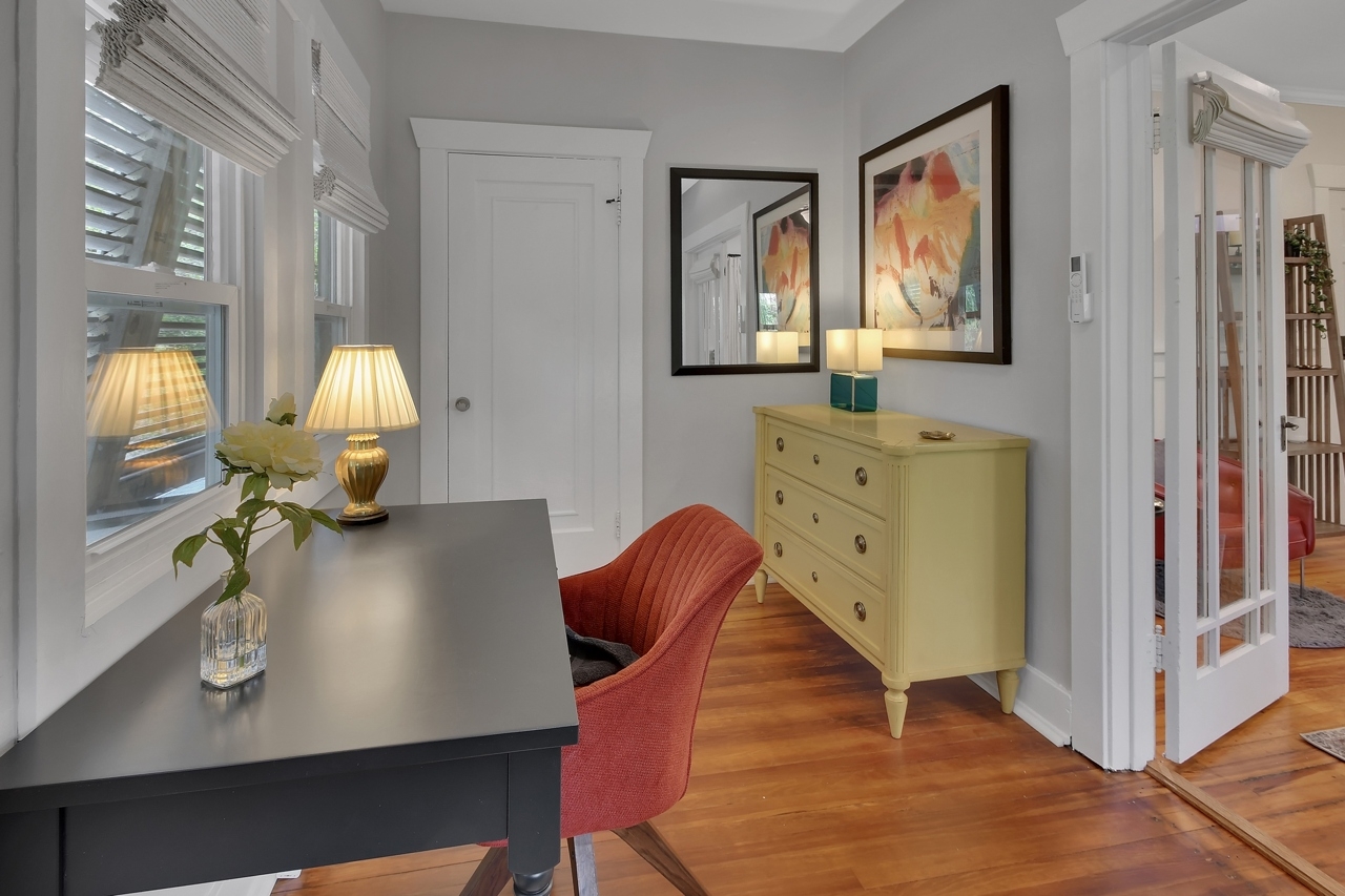 The Michigan House offers five distinct homes — two historic residences downstairs, two boutique flats upstairs, and a studio loft on the third floor — each thoughtfully designed with its own personality. High ceilings, tall original windows, and refinished heart pine floors create a consistent thread of comfort and character throughout. Restored wooden cabinetry and historic pattern tile add authenticity, while each space tells its own story. Every residence also includes a full kitchen for modern living.