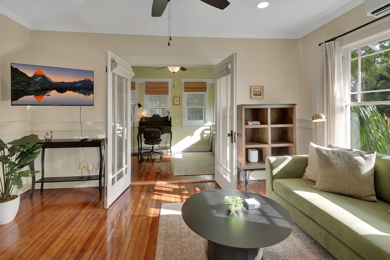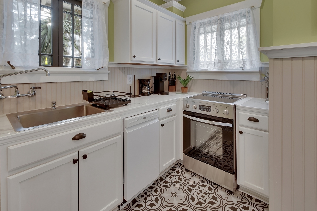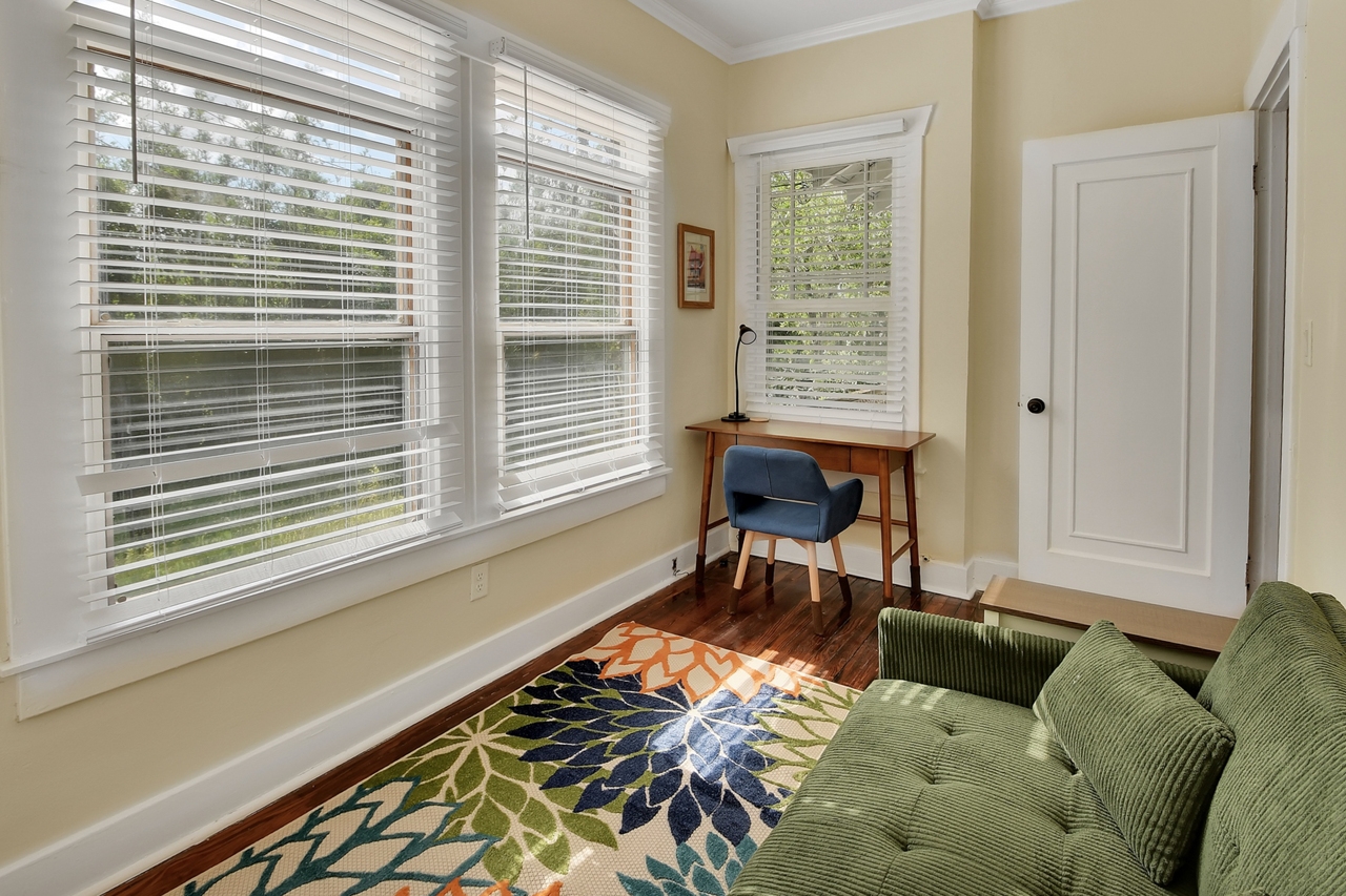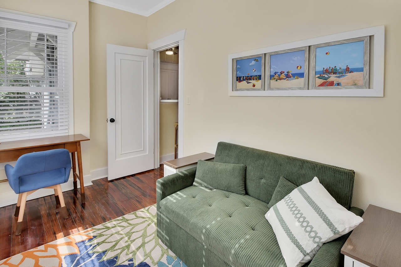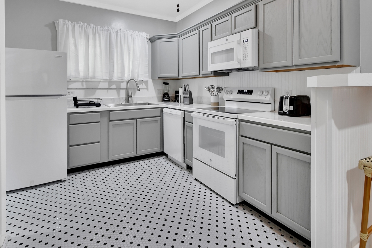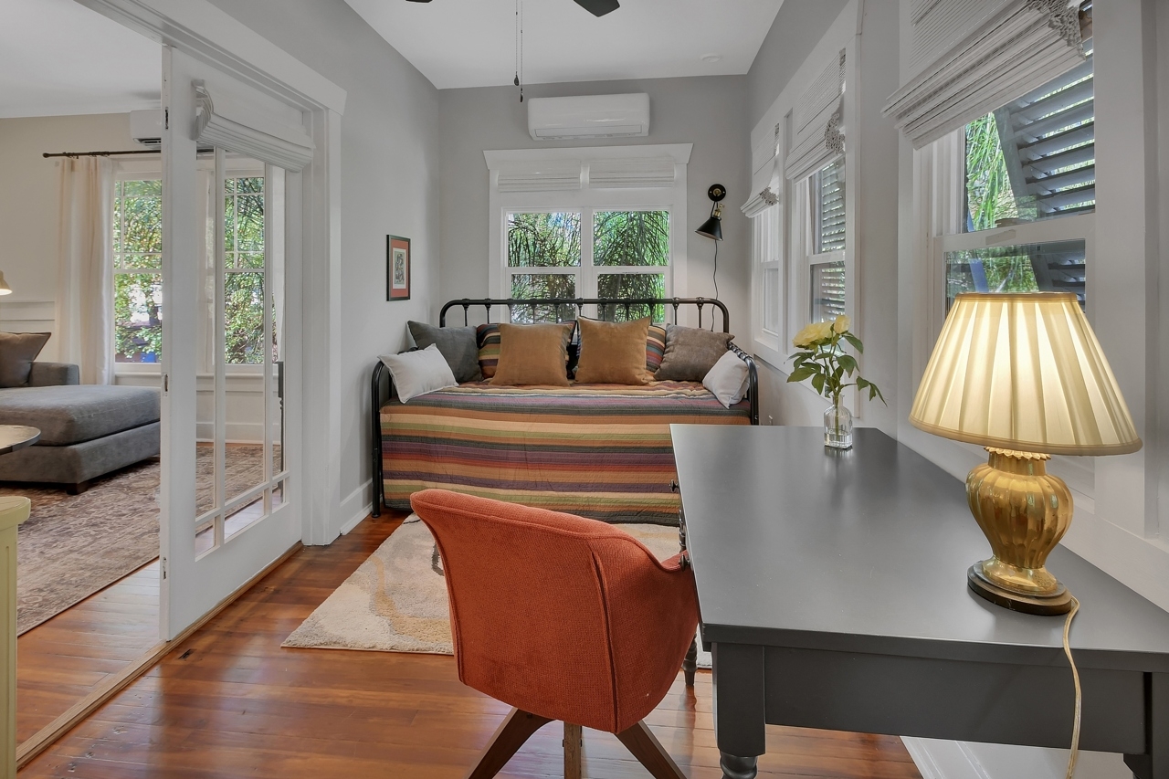 The Michigan House offers five distinct homes — two historic residences downstairs, two boutique flats upstairs, and a studio loft on the third floor — each thoughtfully designed with its own personality. High ceilings, tall original windows, and refinished heart pine floors create a consistent thread of comfort and character throughout. Restored wooden cabinetry and historic pattern tile add authenticity, while each space tells its own story. Every residence also includes a full kitchen for modern living.