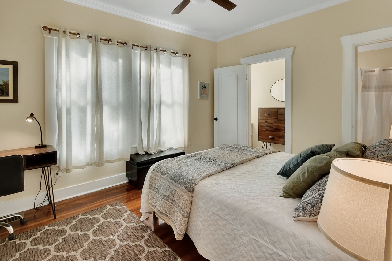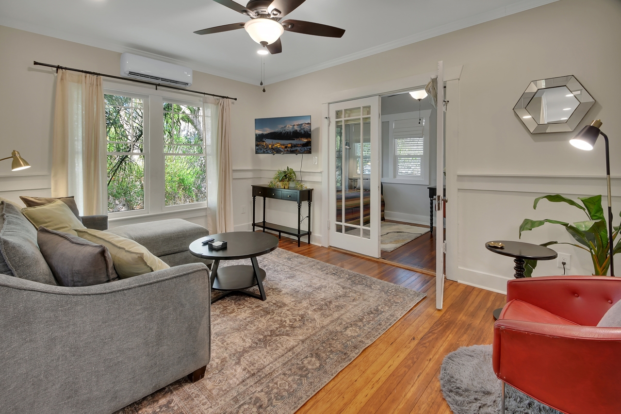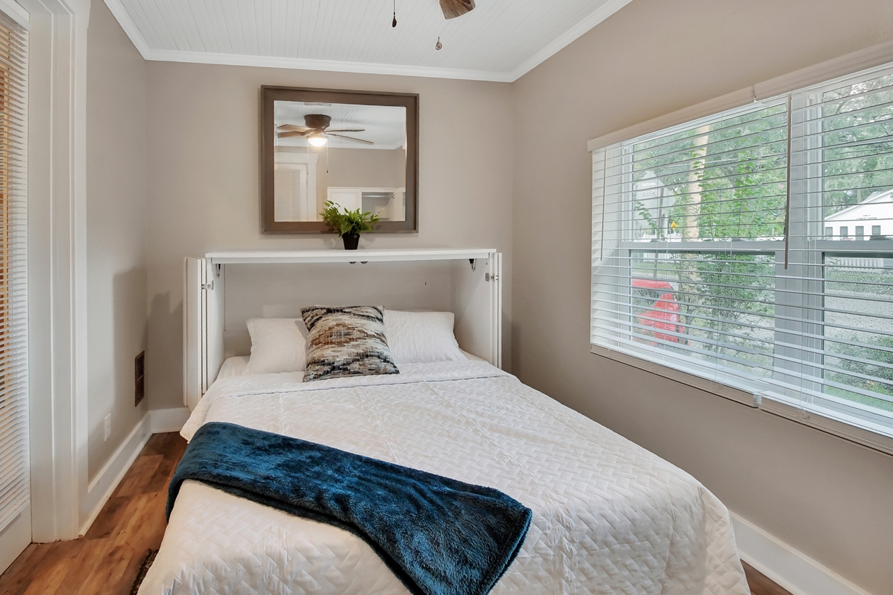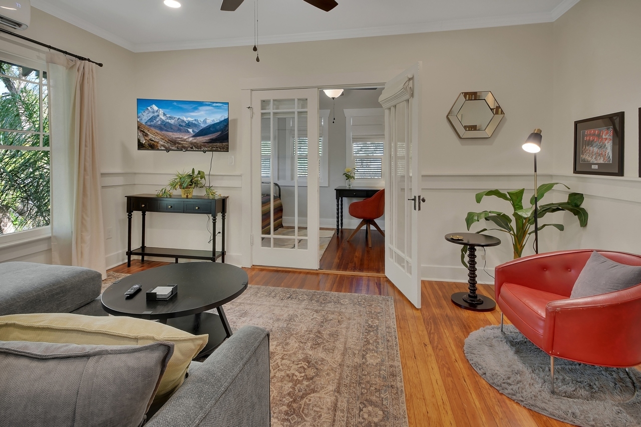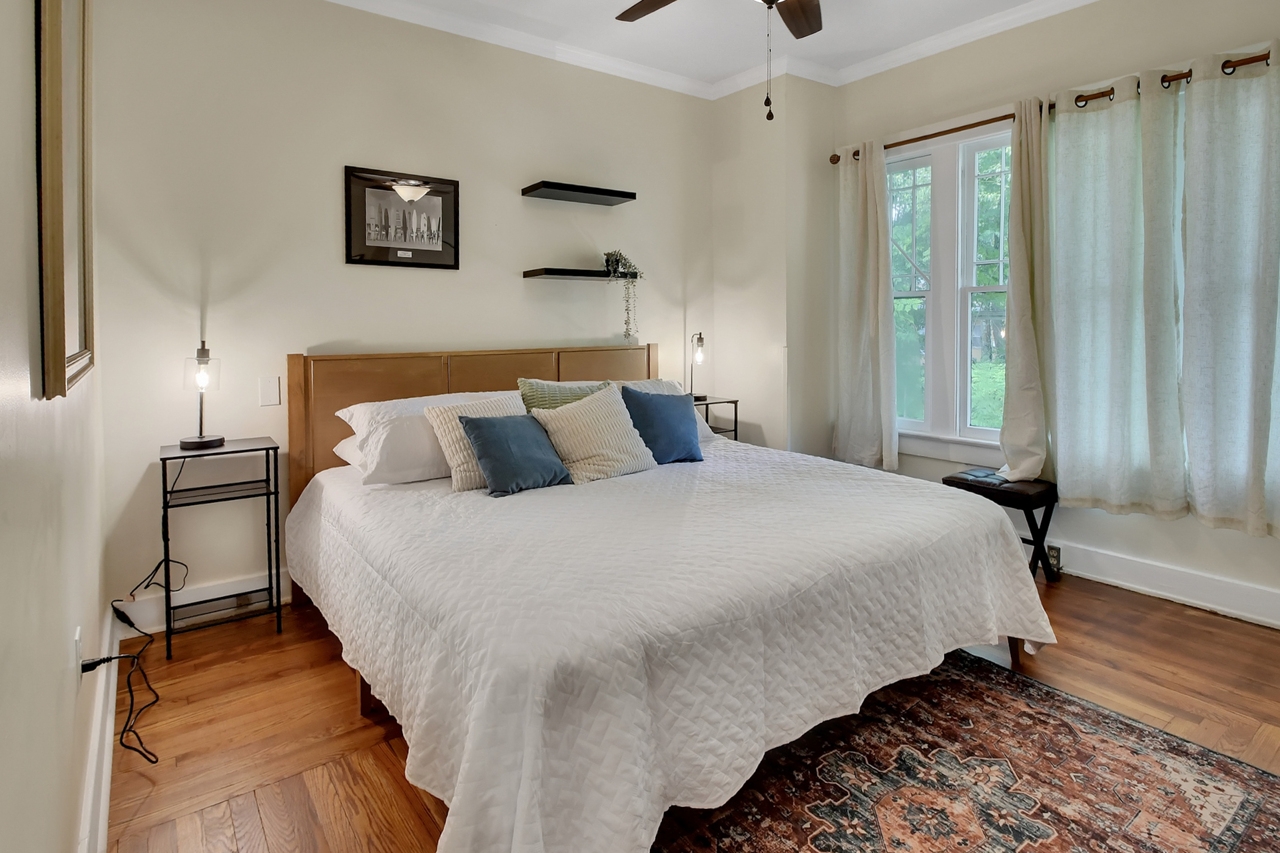 The Michigan House offers five distinct homes — two historic residences downstairs, two boutique flats upstairs, and a studio loft on the third floor — each thoughtfully designed with its own personality. High ceilings, tall original windows, and refinished heart pine floors create a consistent thread of comfort and character throughout. Restored wooden cabinetry and historic pattern tile add authenticity, while each space tells its own story. Every residence also includes a full kitchen for modern living.