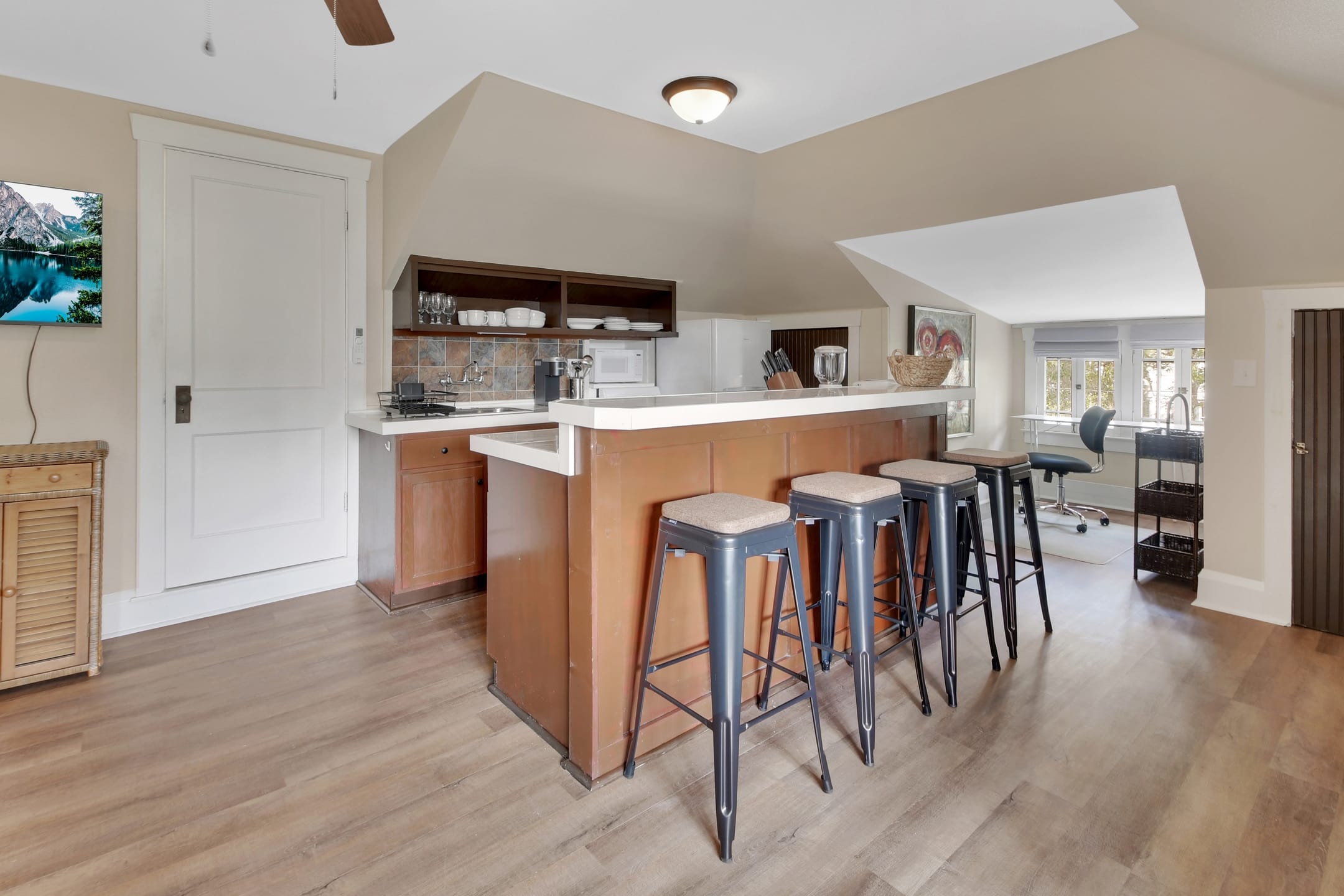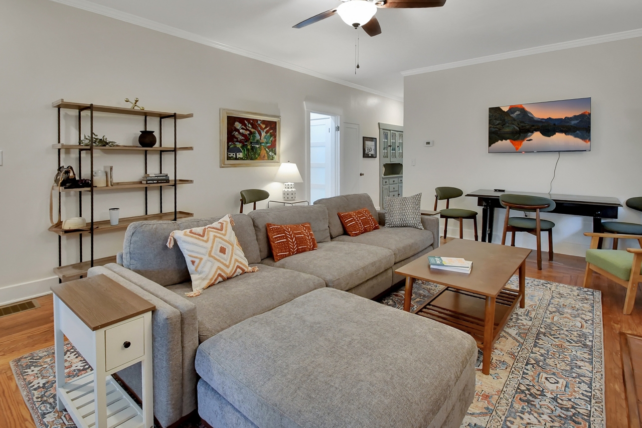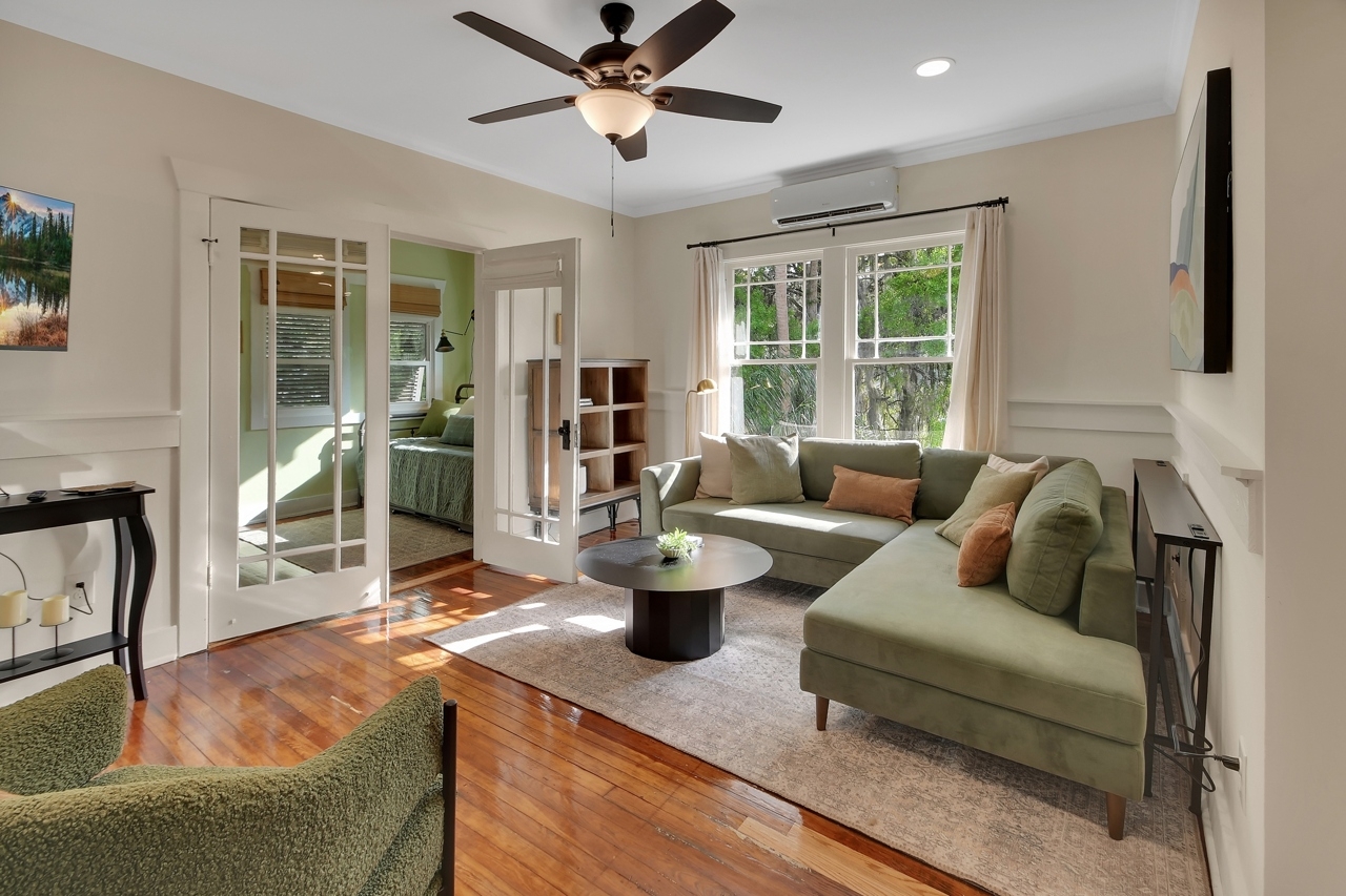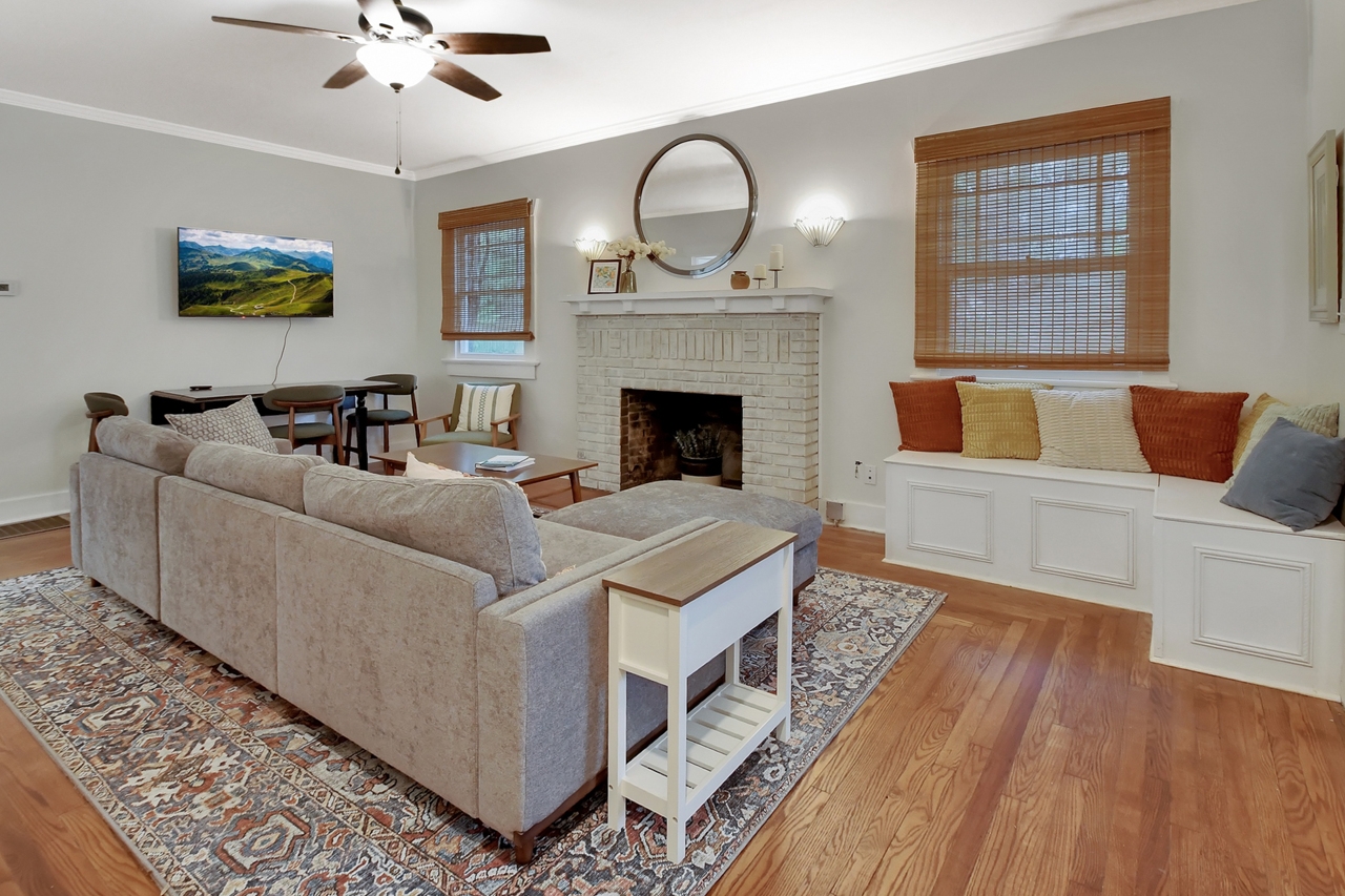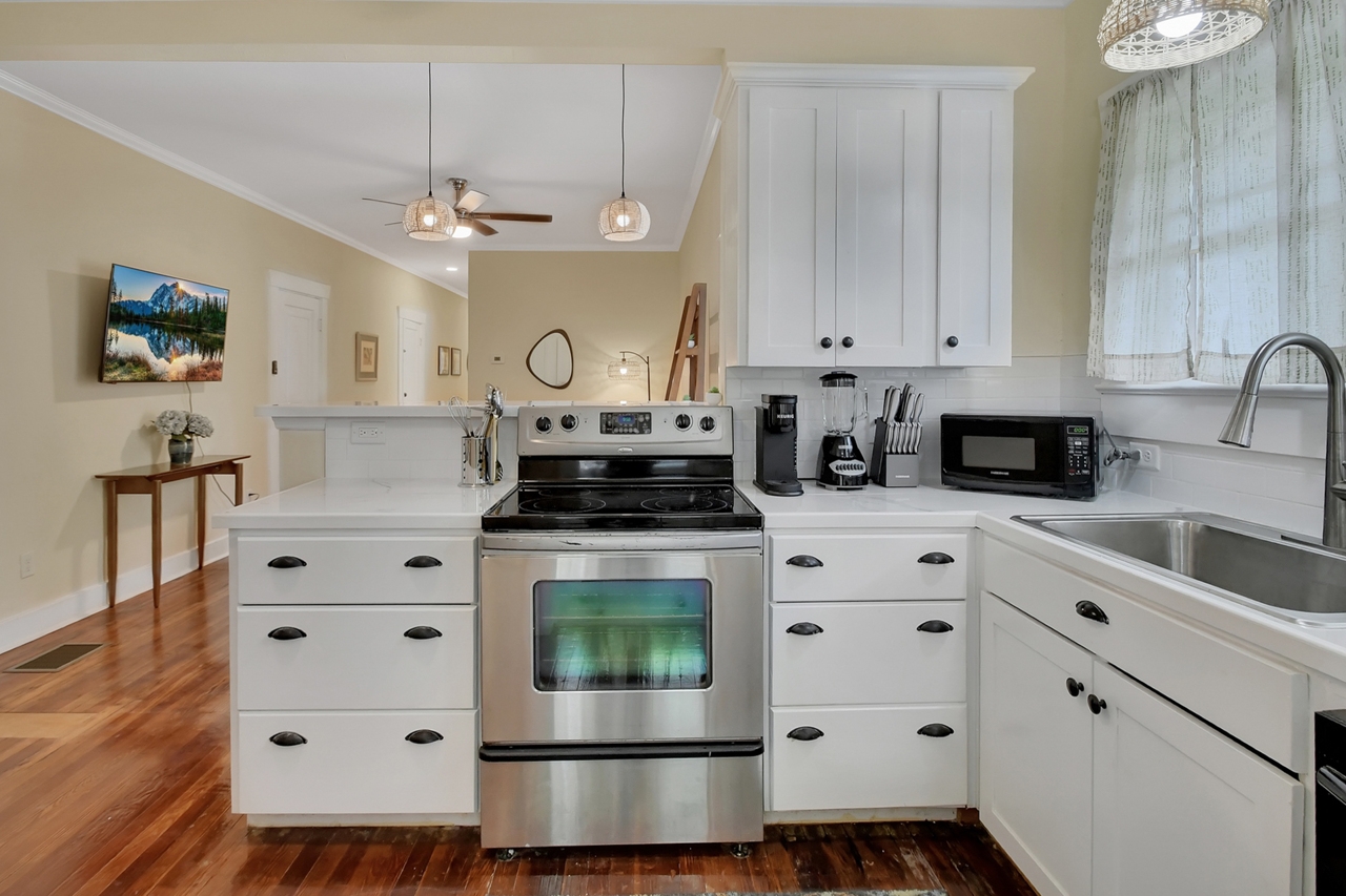 The Michigan House offers five distinct homes — two historic residences downstairs, two boutique flats upstairs, and a studio loft on the third floor — each thoughtfully designed with its own personality. High ceilings, tall original windows, and refinished heart pine floors create a consistent thread of comfort and character throughout. Restored wooden cabinetry and historic pattern tile add authenticity, while each space tells its own story. Every residence also includes a full kitchen for modern living.
